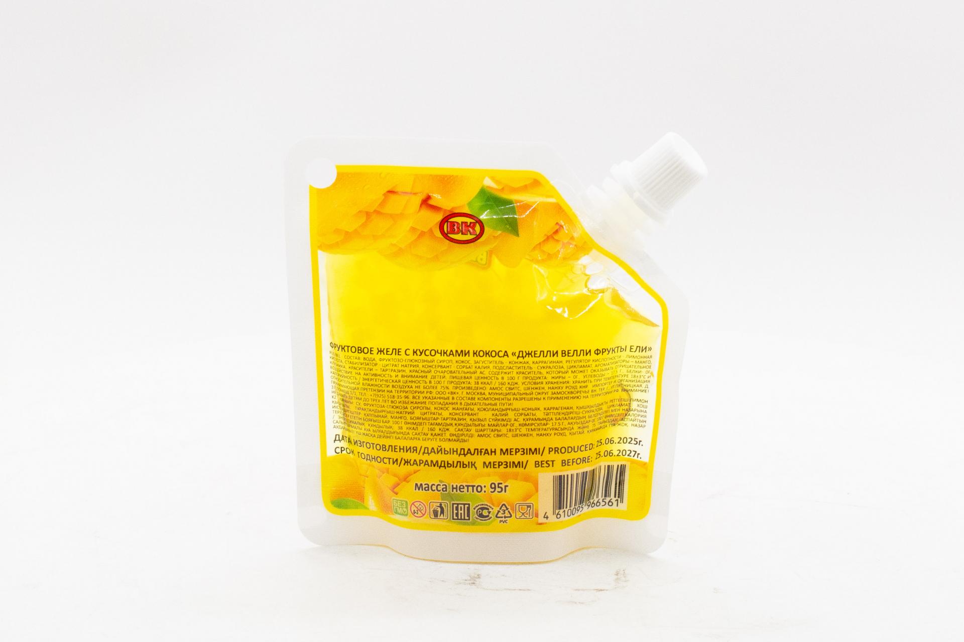 Фруктовое желе с кусочками кокоса Джелли Велли Фрукты Ели (Китай) 95г22,17 руб. за штуку (в упак. 12 шт.) |