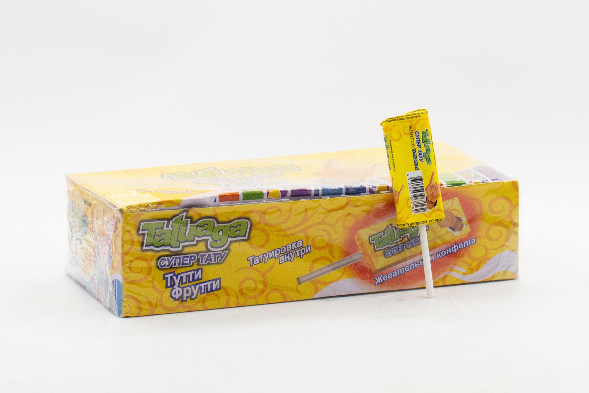 Жевательная конфета на палочке Tatuaga с тату Тутти-Фрутти (Пакистан) 10г5,30 руб. за штуку (в упак. 50 шт.) |